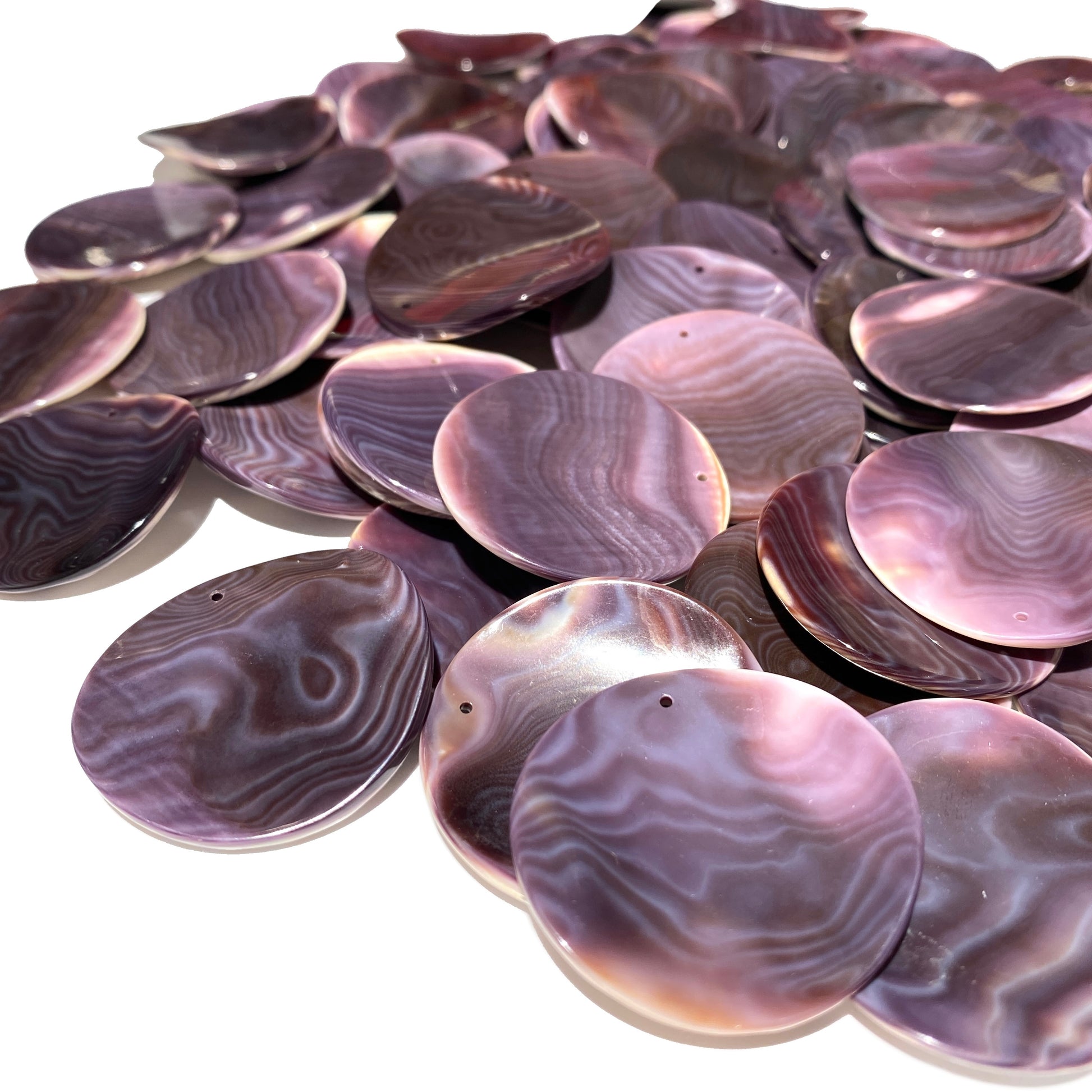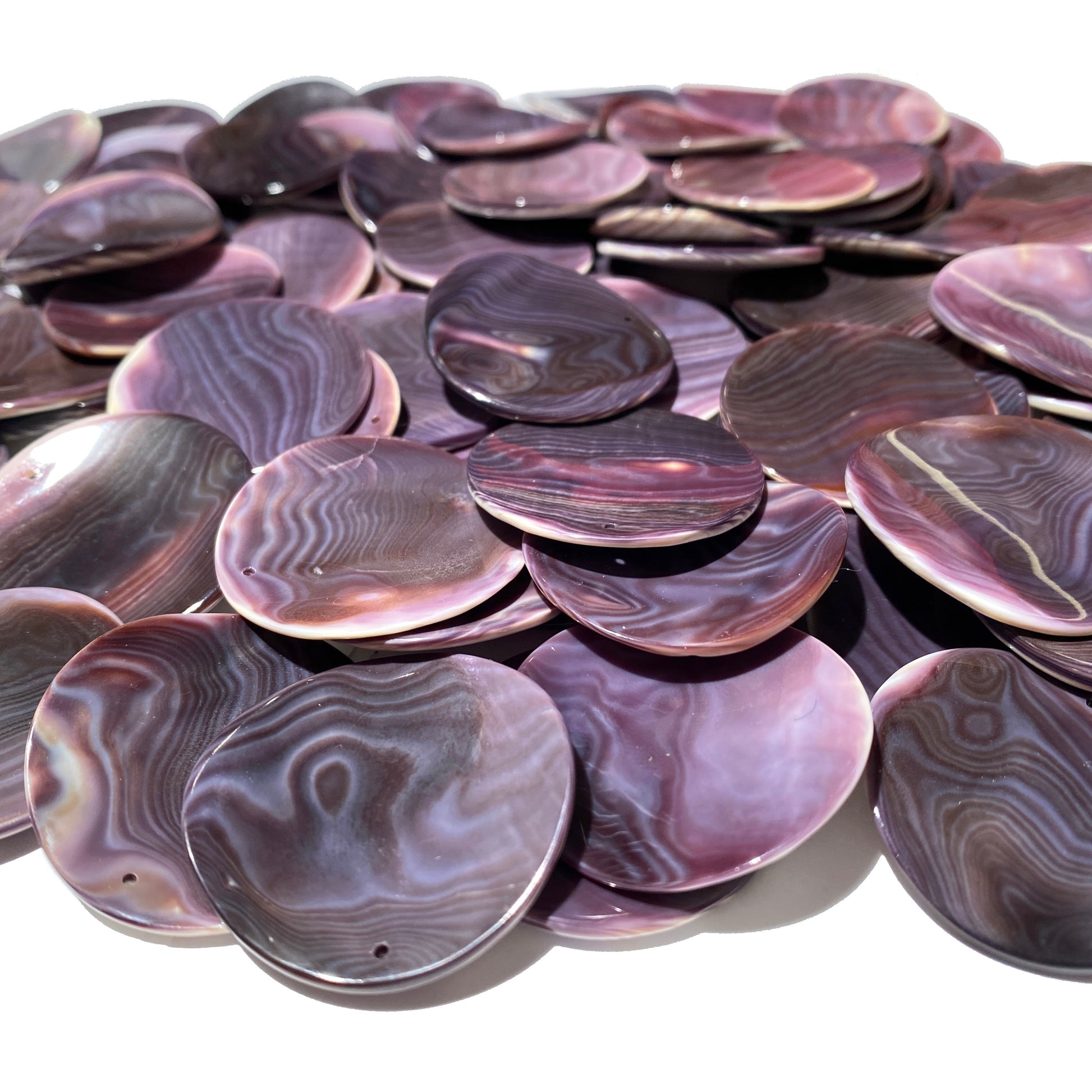 Introducing our stunning set of four American (New York/ Rhode Island) wampum shell pendants, each crafted into a coin shape with a mesmerizing dark purple color that catches the light in a truly captivating way. These pendants are perfect for those seeking to add a touch of elegance or make a statement with their jewelry.