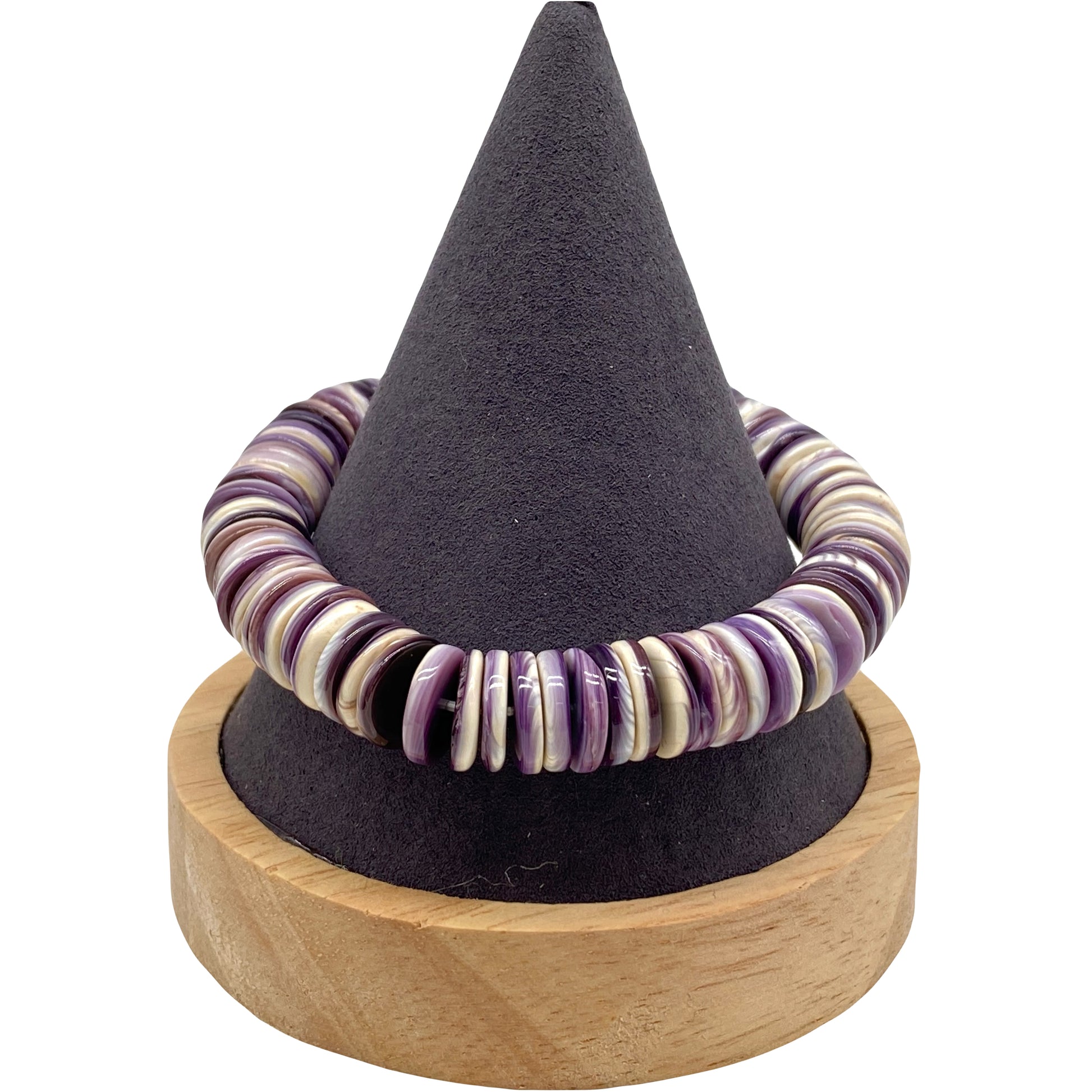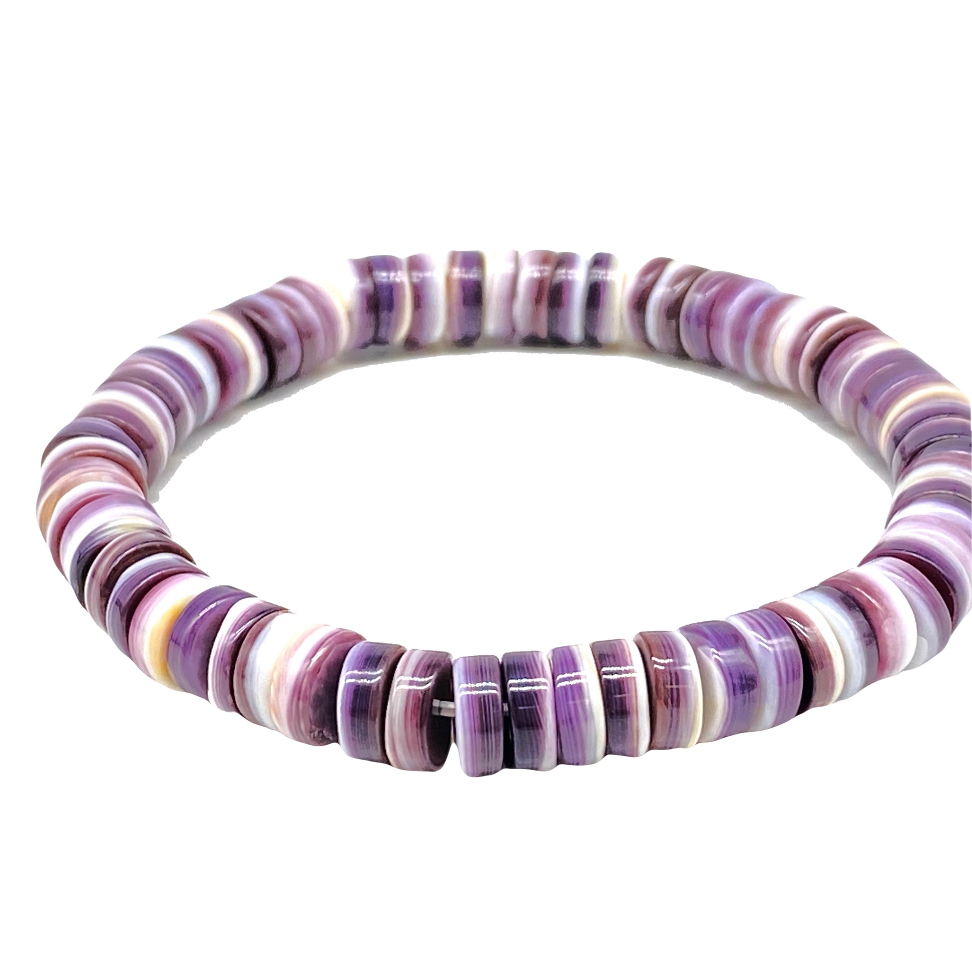 Introducing the Wampum Shell Bracelet from Aloha Gems USA - the perfect blend of elegance and history. Crafted with 100% natural, undyed and unenhanced heishi-shaped wampum shells, this bracelet measures 7.25 inches and is designed to fit comfortably on any wrist size thanks to its elastic band.