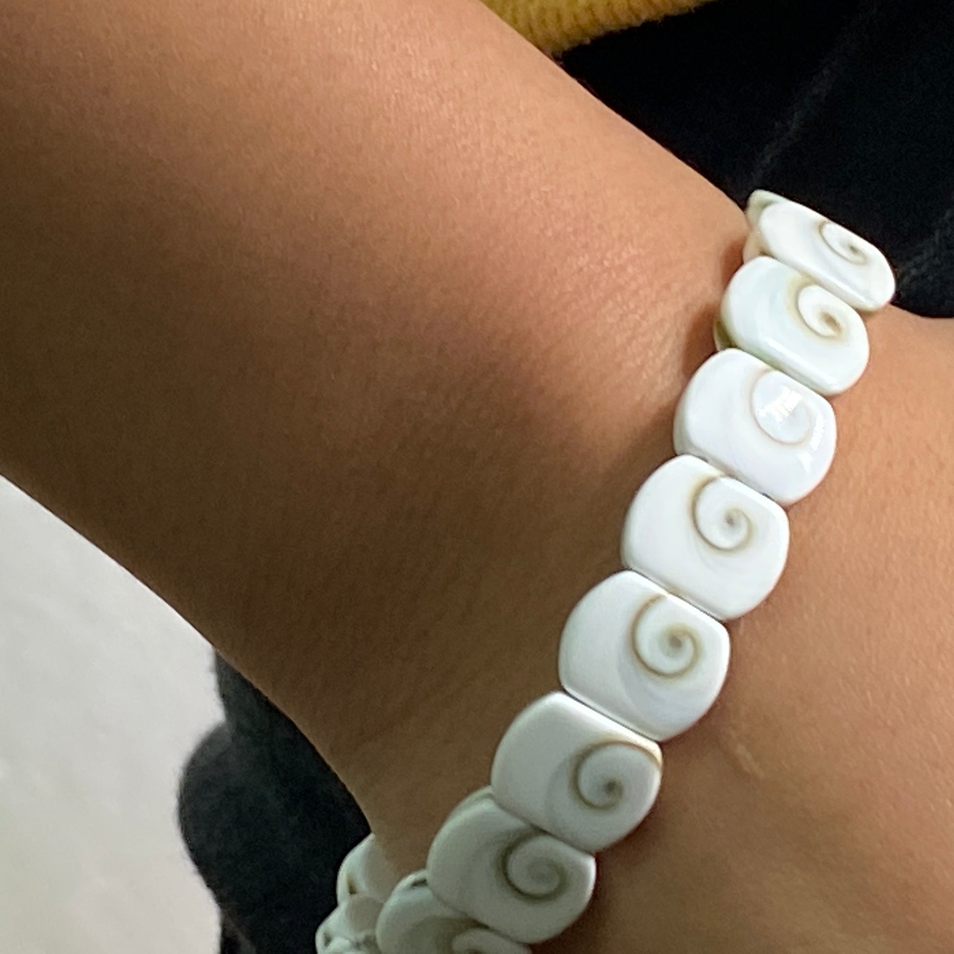 Introducing Aloha Gems USA's Indonesian Shiva Eye Shell Bracelet - a true testament to the beauty of nature. This remarkable bracelet is 7.25 inches long, double drilled, and elastic, making it suitable for both men and women.