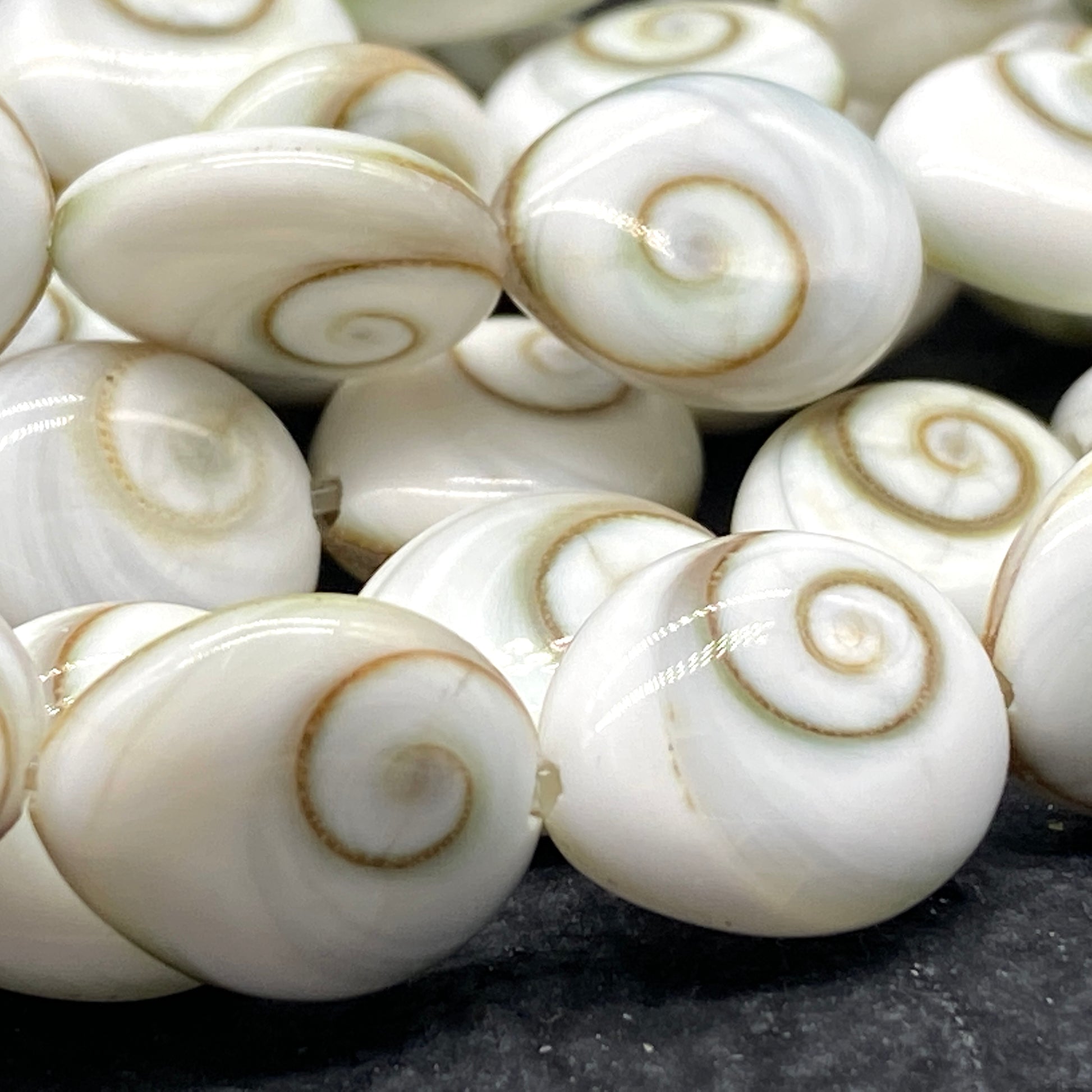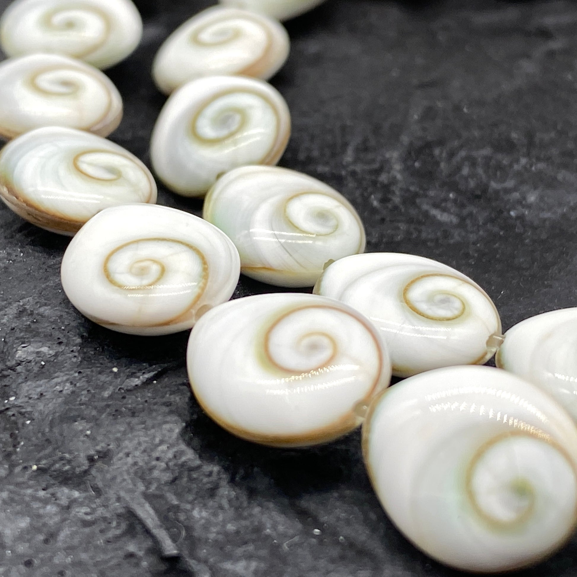 Shiva Eye Shell Beads From Pacific Ocean (AAA Whitest White Quality - Every Bead Made From Two Operculum Shells - Matching Spiral Matrix) Chakra Energy Doublet Tear Drop Shape (Protective Door of the Snail Shell)