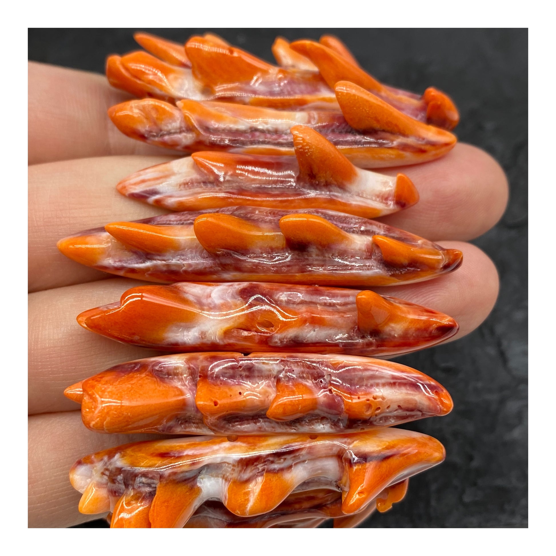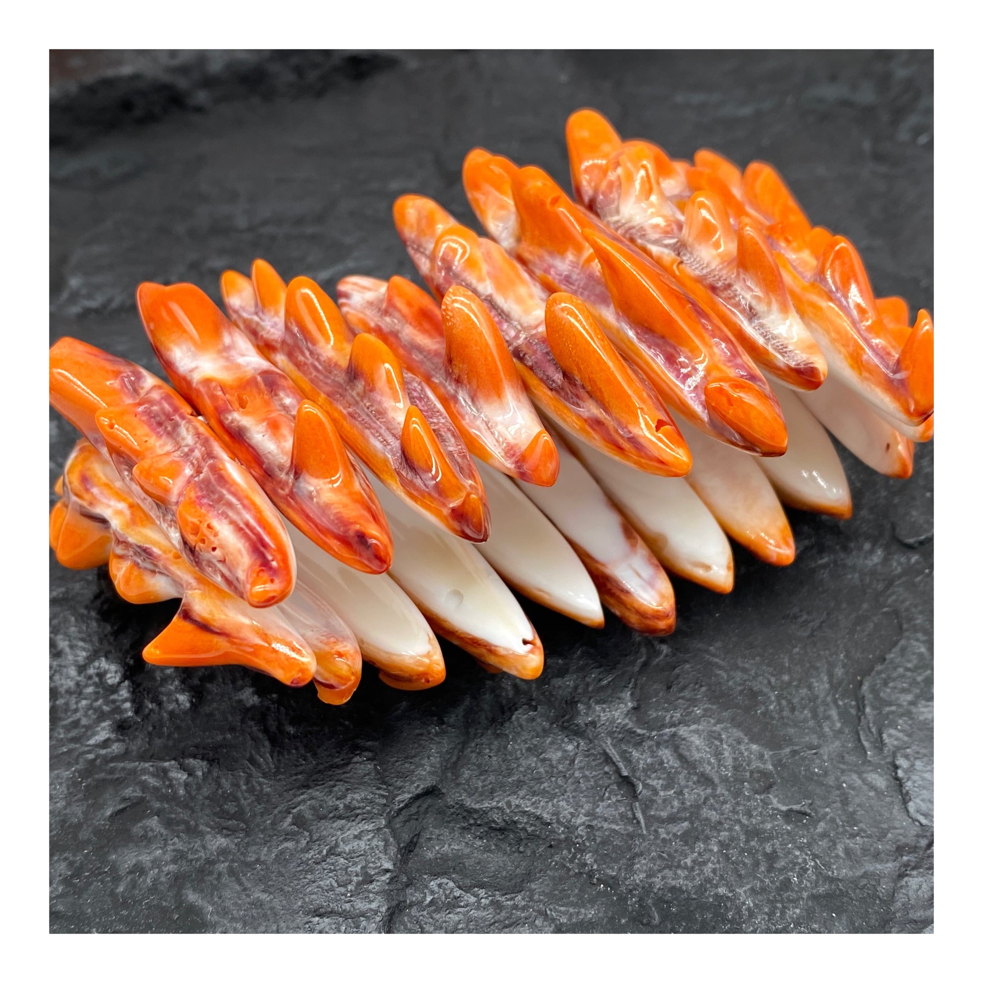 Orange Spiny Oyster Shell Beads Bracelet From Mexico - Organic Spines (Minimal White Parts) Double-Drilled Elastic Photo Doesn't Do It Justice)