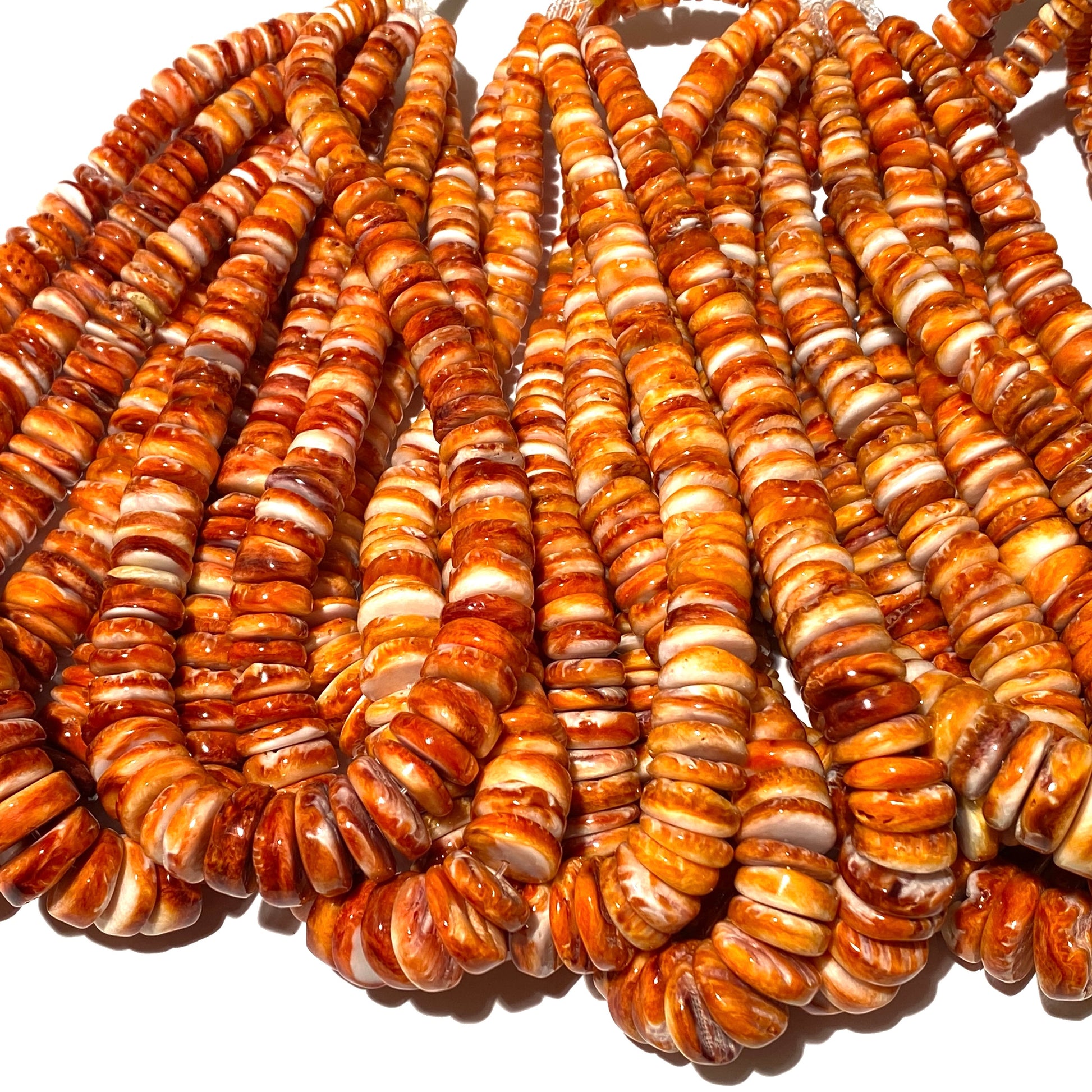 Gigantic Orange Spiny Oyster Shell Beads From Mexico (Minimal White Part - Organic Thickness) Native American Style - Graduated Free Form Rondelle Heishi Shape - DIY Jewelry Making (Photo Doesn't Do It Justice)