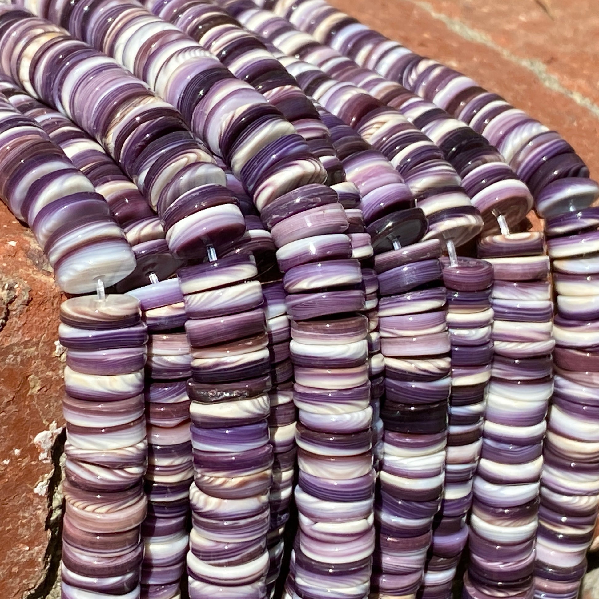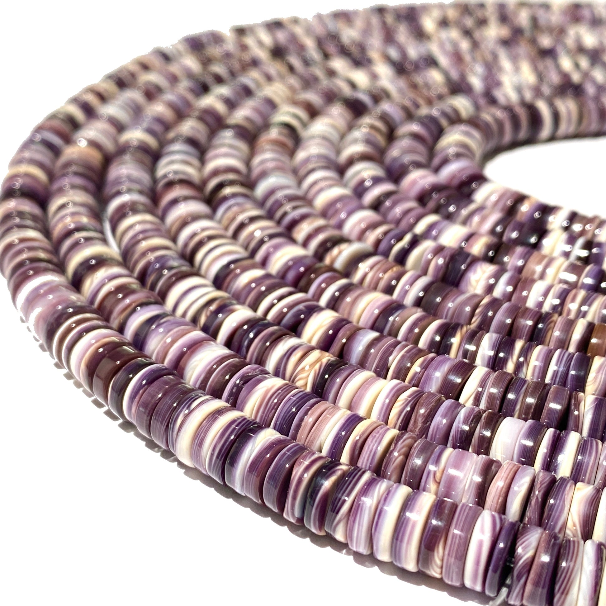 2-Tone-Matrix Lavender Wampum Shell Beads From New York/Rhode Island (America's First Currency From Year 1637-1673) Smooth Heishi